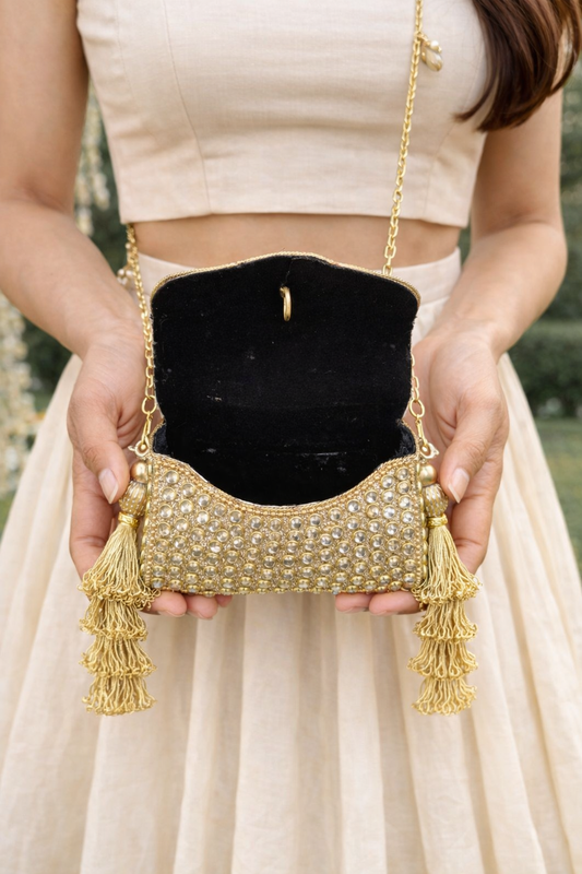 Noor-e-Zari Mini Clutch Bag with Tassles and Charms