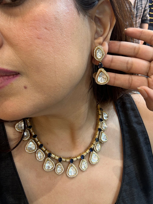 Polki Hasli Choker Set - Teardrop Earrings, Indian Jewelry