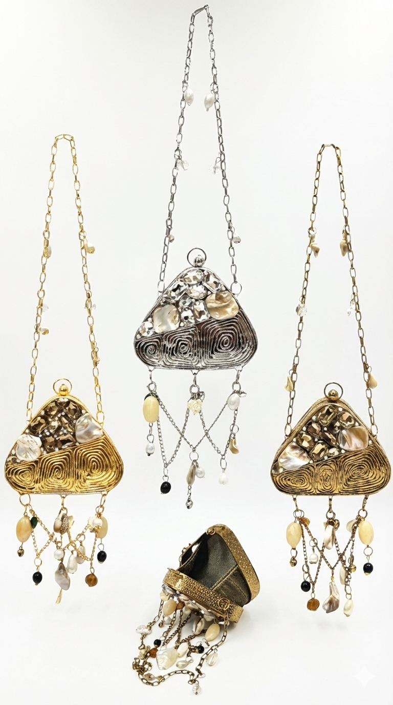 Delicately crafted yet bold in presence, Batua Nano Clutch is designed to elevate your festive and occasion wear. Featuring intricate textures, embedded embellishments, and a refined silhouette, this clutch is a statement accessory in a compact form.