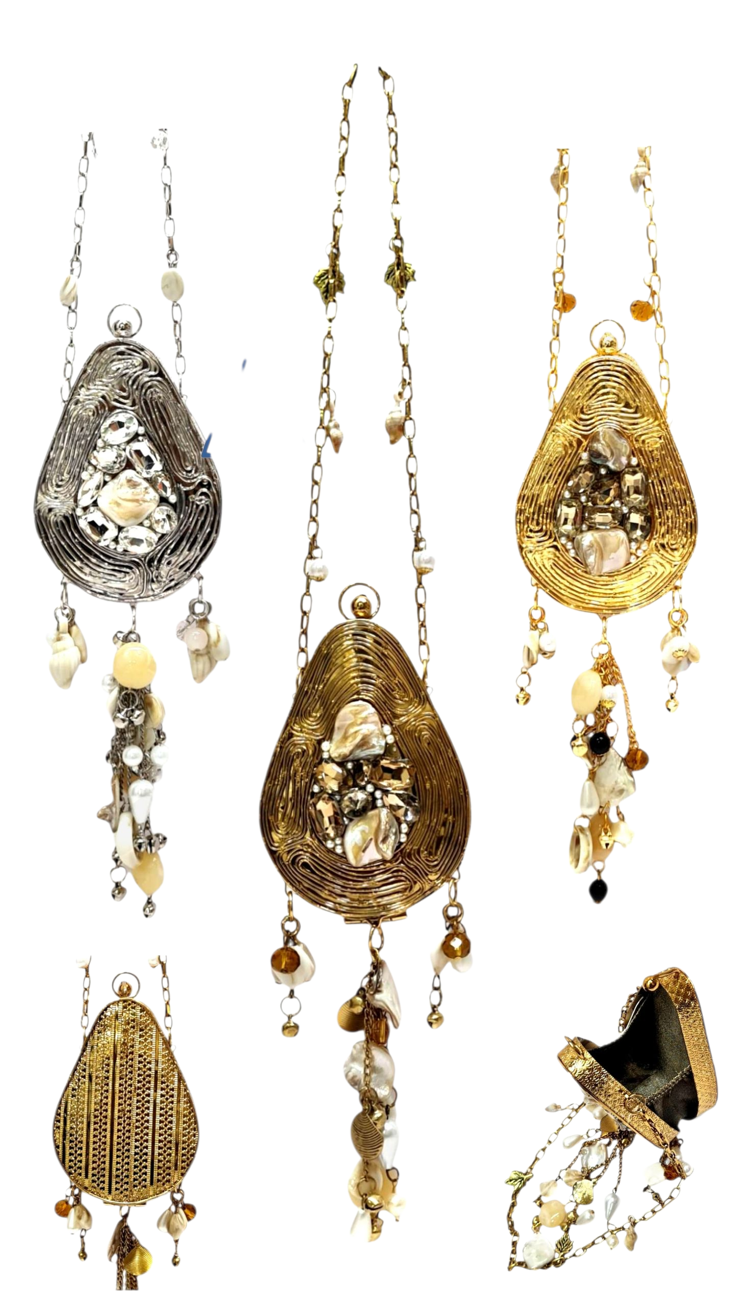Delicately crafted yet bold in presence, the Avocado Drop Nano Clutch is designed to elevate your festive and occasion wear. Featuring intricate textures, embedded embellishments, and a refined silhouette, this clutch is a statement accessory in a compact form.