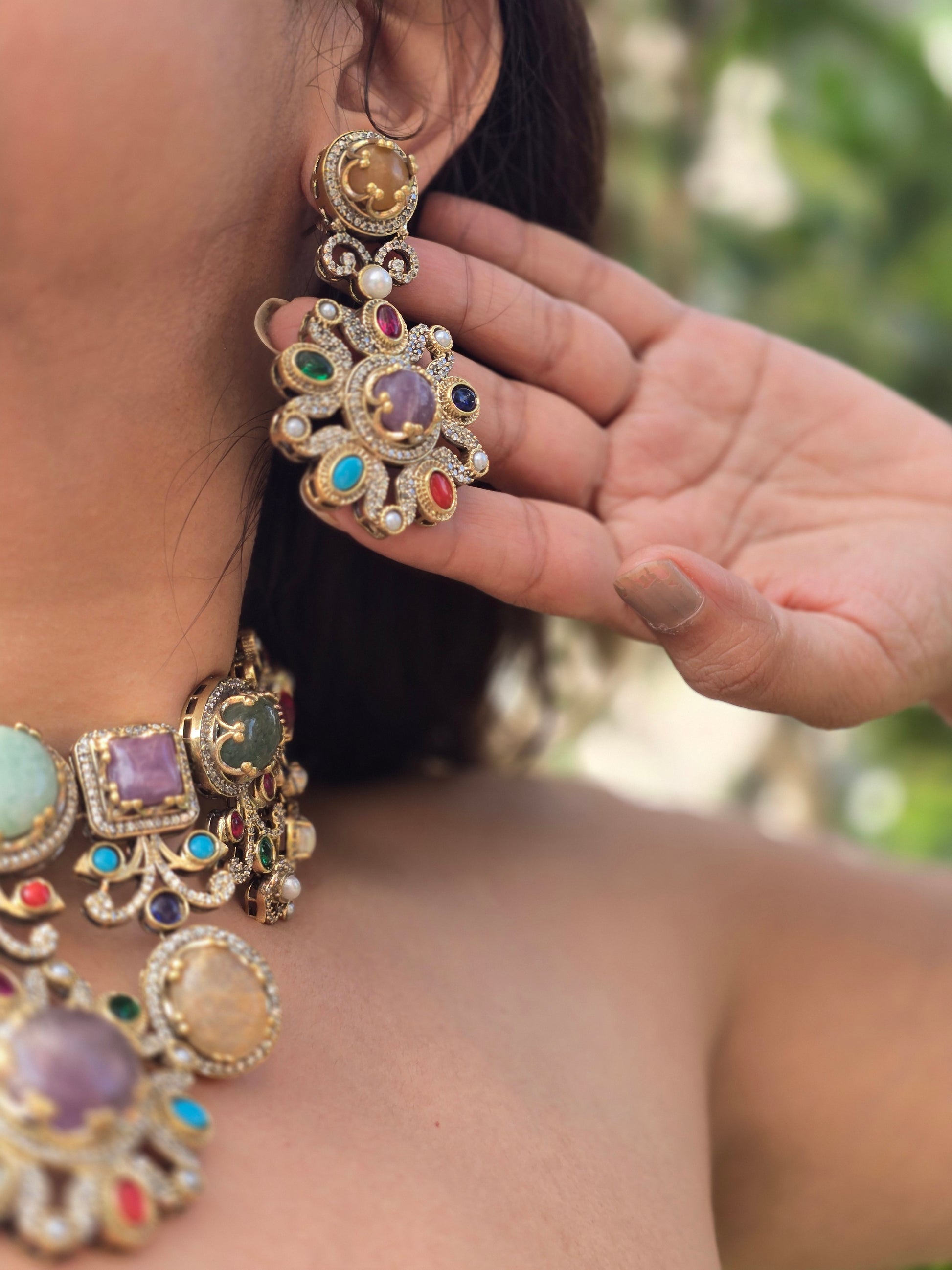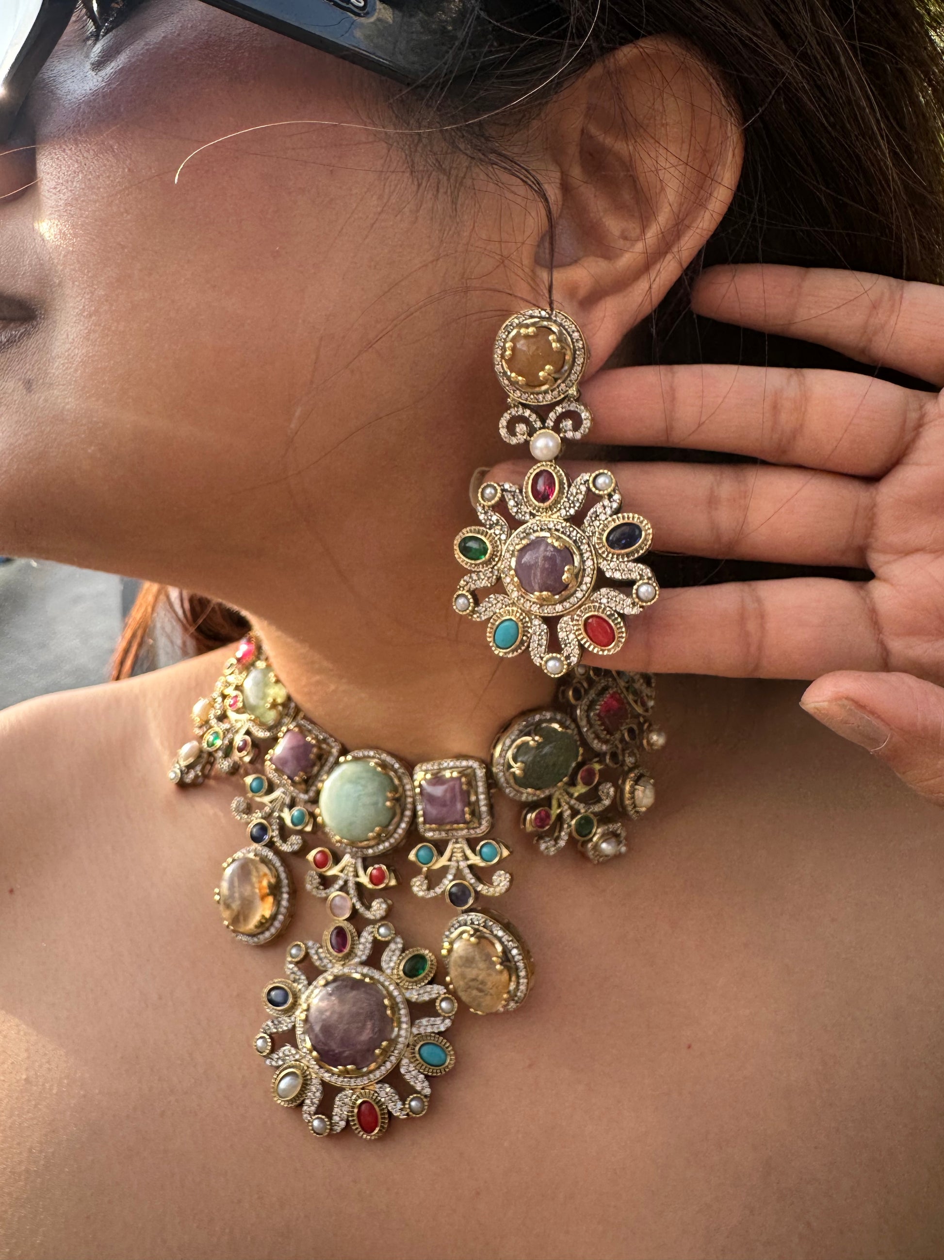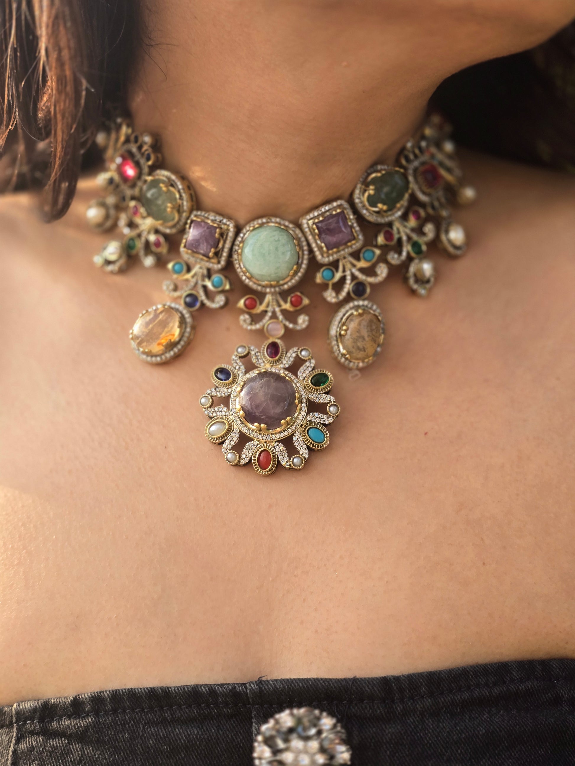 Multistone Choker Necklace Set