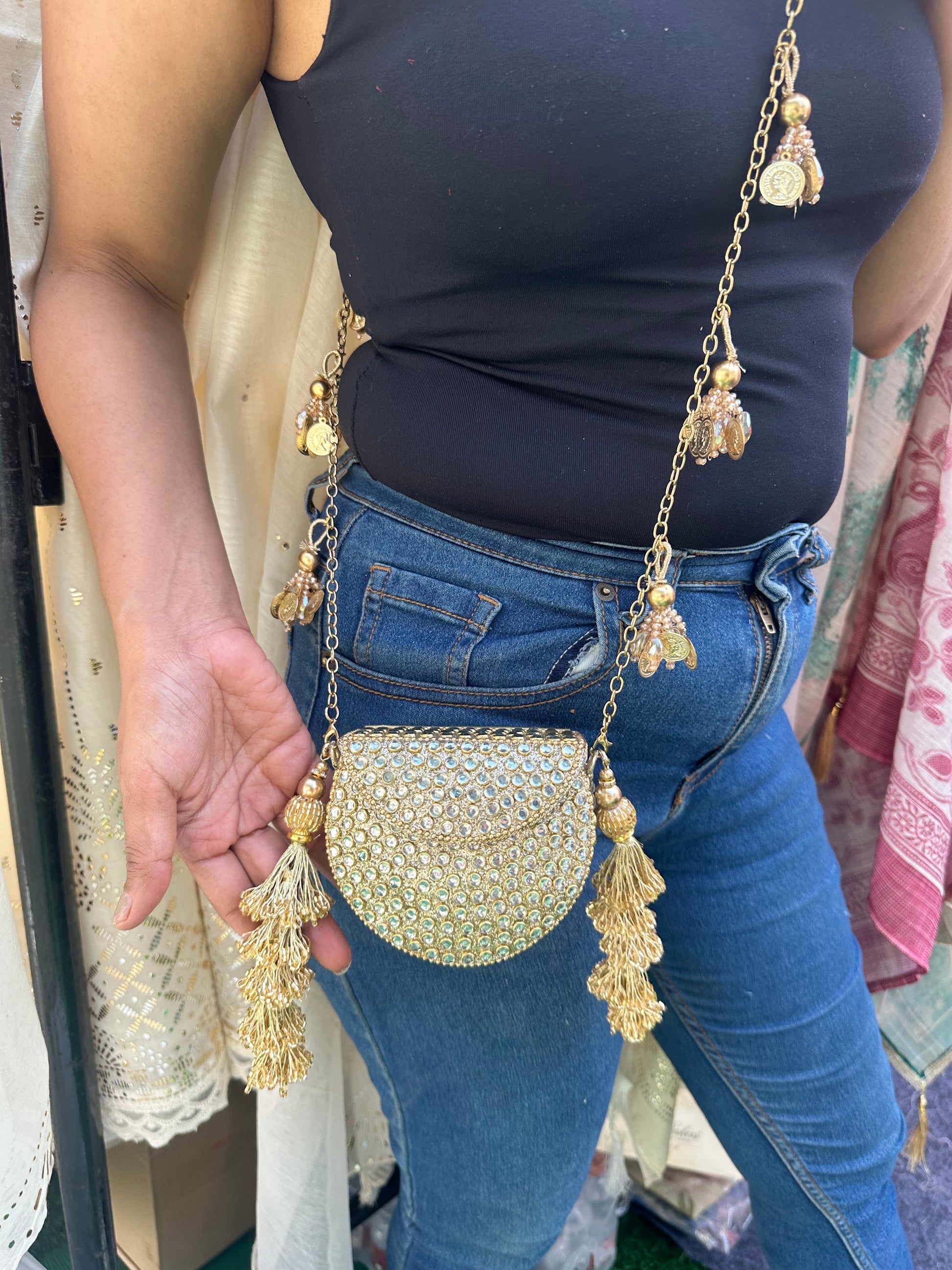 Noor-e-Zari Mini Clutch Bag with Tassles and Charms