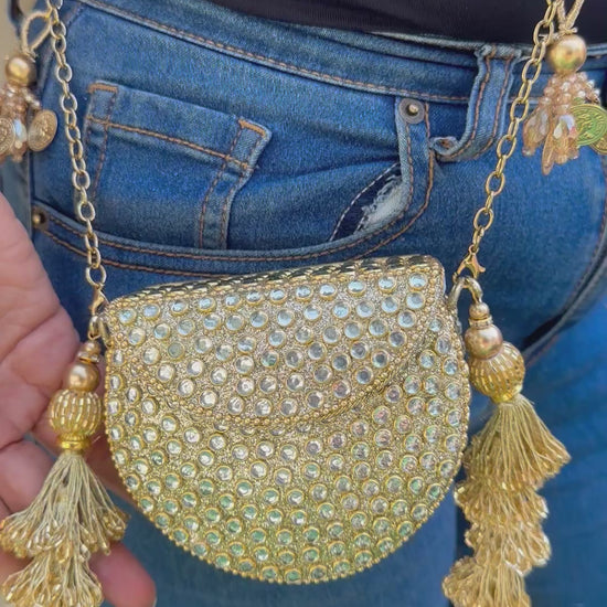 • Unique Crescent Shape: The modern, curved "D-frame" design offers a sophisticated update to the classic Indian potli, making it a standout accessory for weddings and festive galas.