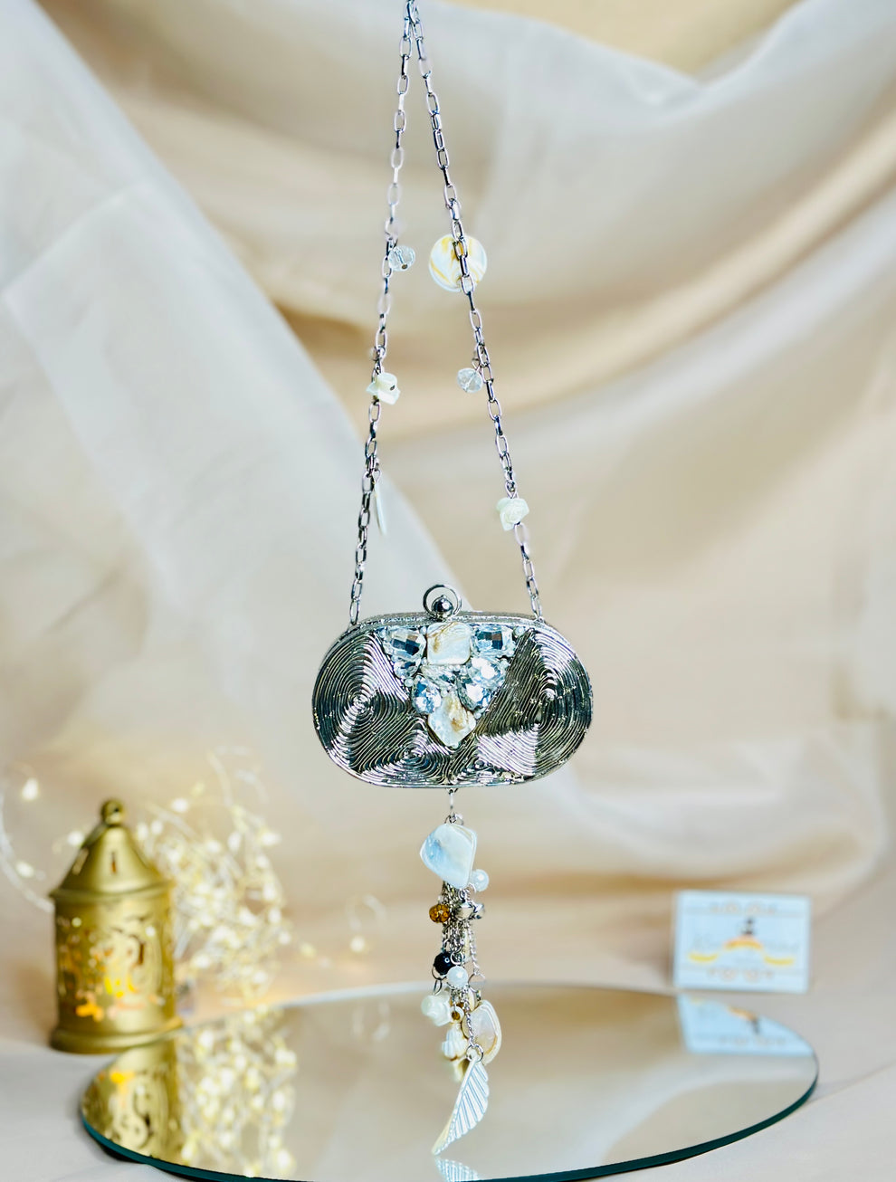 Thoughtfully designed with two interchangeable sling chains, it allows seamless styling—from handheld elegance to crossbody ease.