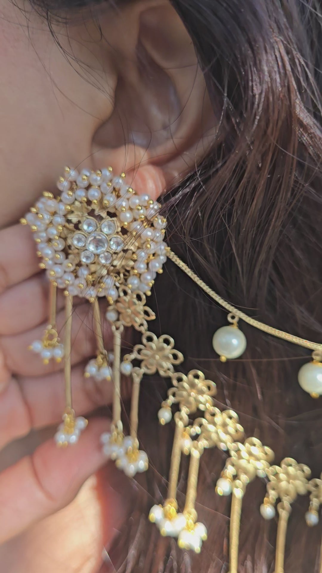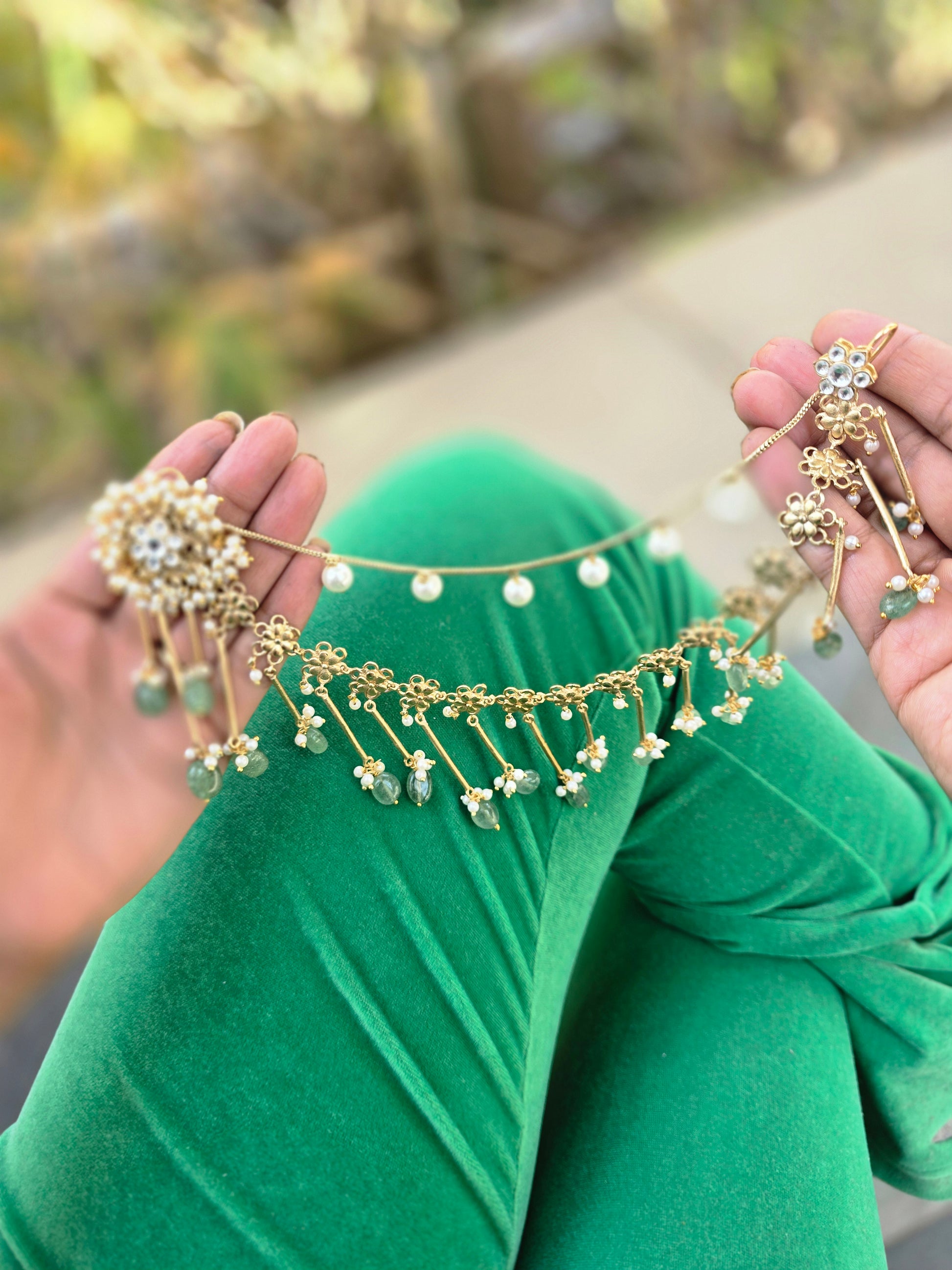 *Three-layer kaanchain with pearl and jhumki detailing